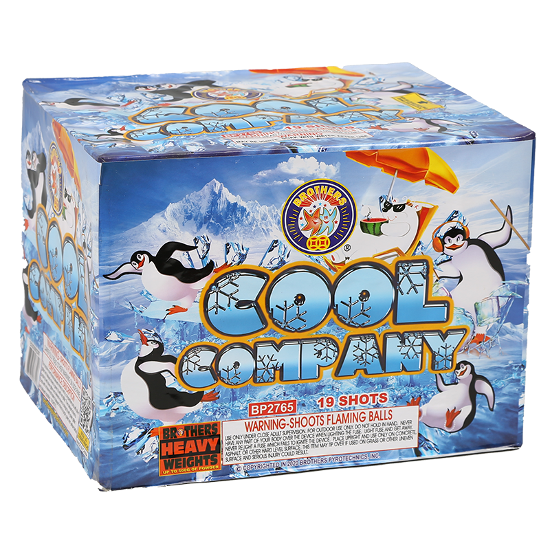 The popular crowd shoots delayed mines to red tip, chrysanthemums with silver glitter and delayed mines to green tip with red glitter. Then delayed mines to purple tip with silver glitter and delayed mines to orange tip with green glitter. Ends with a three-shot finale of delayed mines to purple, green and yellow delayed crackling. 19 SHOTS